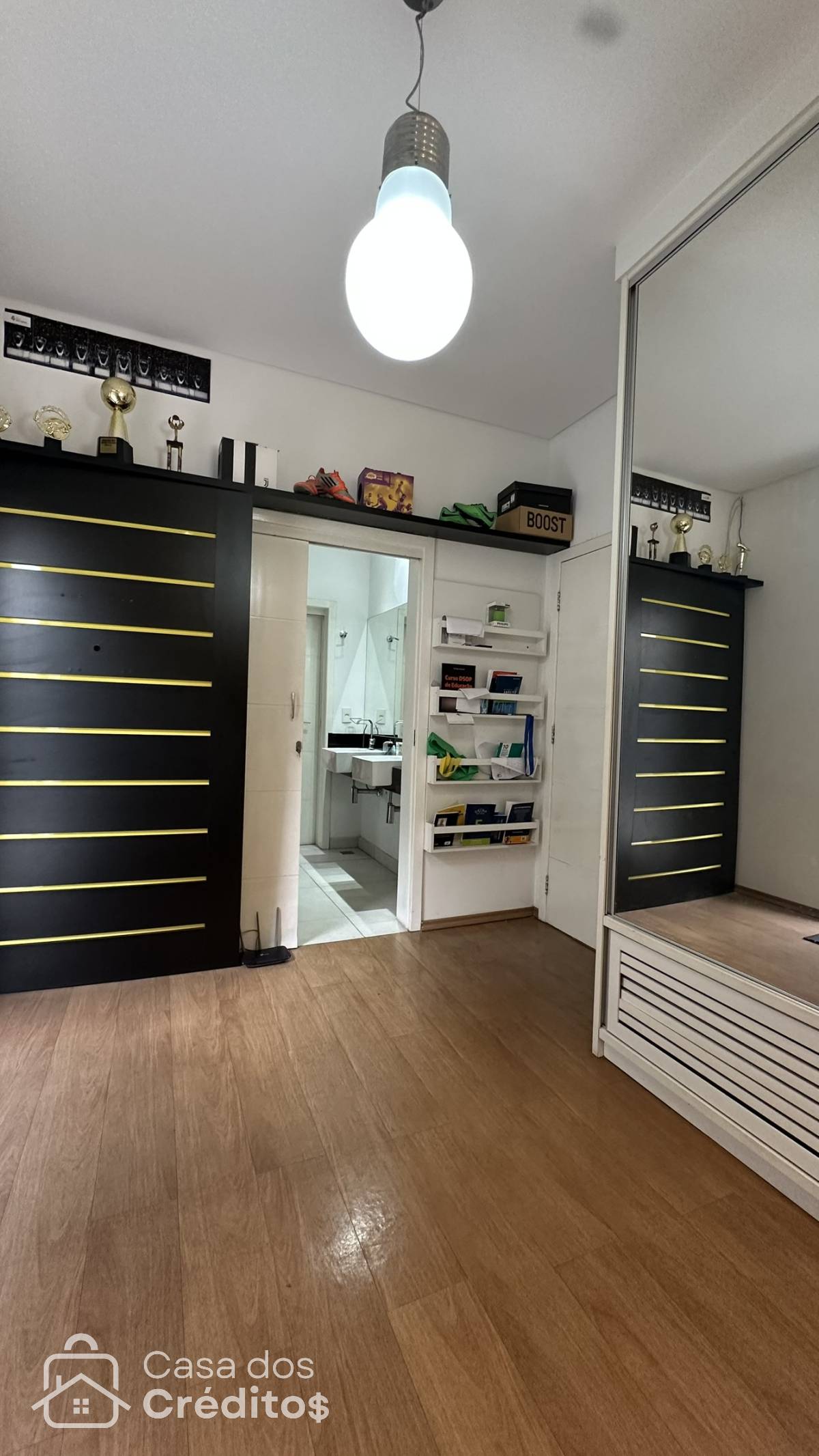 O imóvel tem 3 quartos, sendo 1 suíte, possui 3 banheiros, 1 sala e 4 vagas de garagem.